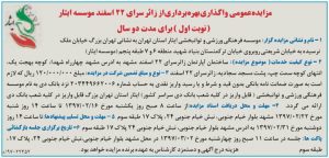 • مزایده عمومی واگذاری بهره برداری از زائرسرای ۲۲ اسفند واقع در مشهد مقدس