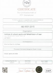 موسسه ایثاردر سايه الطاف الهي و همفکري و همکاری هيات مديره موسسه وتلاش شبانه روزي همکاران درسراسر كشور با رعايت استانداردهاي مديريتي توليد و عرضه محصولات و ارائه خدماتِ با كيفيت به جامعه معظم ایثارگری،در عرصه تجارت داخلي و جهاني که داشتن گواهي نامه تأييد صلاحيت استانداردهاي سریِ ايزو شرط اوليه در داد و ستد داخلي و بين المللي می باشد، در اين راستا،طبق بررسي و مميزي انجام شده، اين موسسه موفق به اخذگواهينامهISO 9001):(2015 سيستم مديريت كيفيت جهت فعاليت هاي خود در سه حوزه فرهنگي، ورزشي و توانبخشي از شركت (internatuonail TUV) نائل گرديد،که با اخذ این گواهینامه برگ زرین دیگری برای موسسه ایثار رقم خورد.