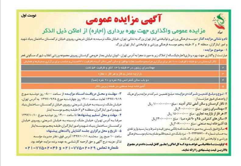 جلسه بازگشایی پاکات مزایده عمومی بهره برداری از اماکن مجتمع سیدالشهداء (ع) شهرک فجر